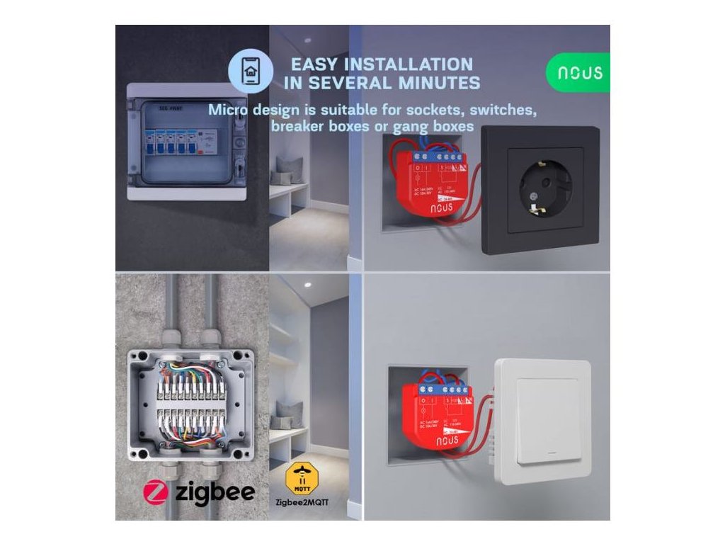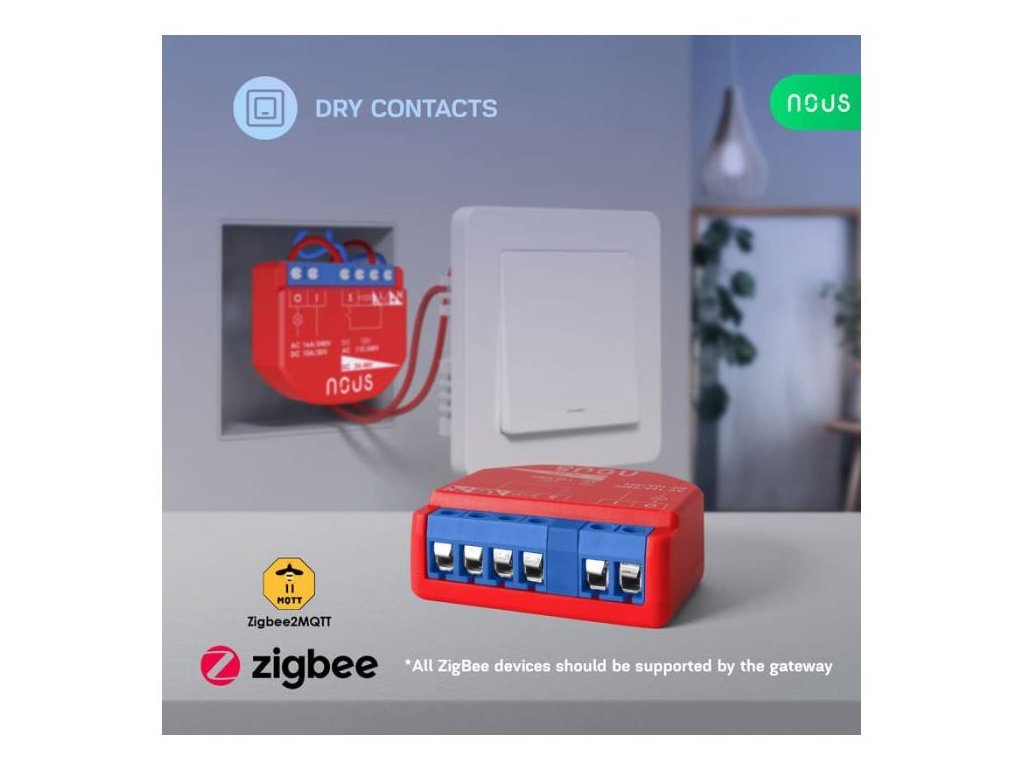 Špeciálne funkcie: Funguje s aplikáciou alebo lokálne v aplikácii Home Assistant so zigbee2mqtt alebo zha, 1 kanál, žiadny merač spotreby, suché kontakty