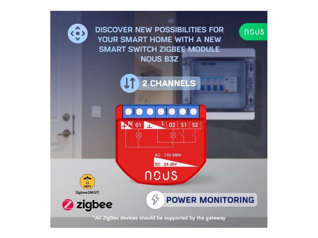 NOUS B3Z, ZigBee SMART Switch, prepínač (s mera)