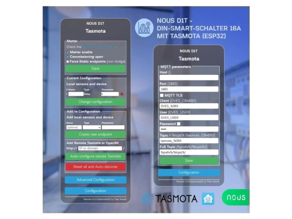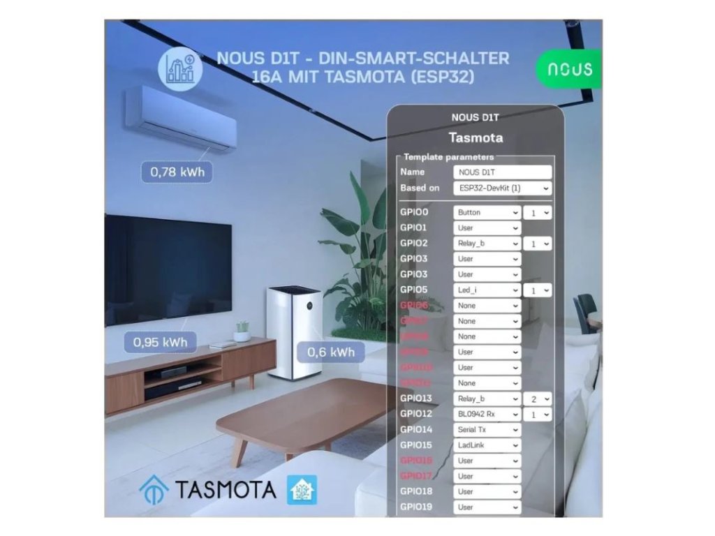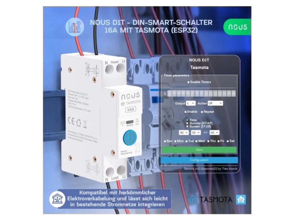 NOUS D1T, Tasmota DIN SMART Switch, prepínač