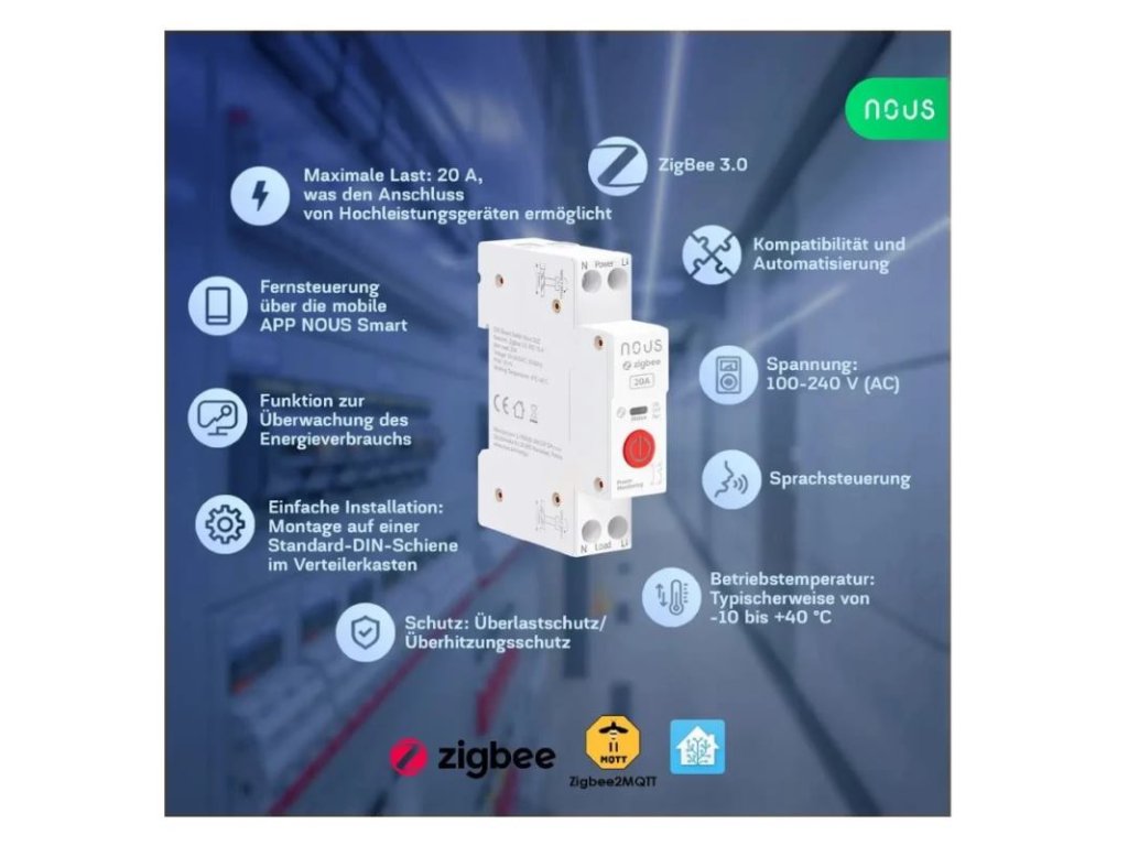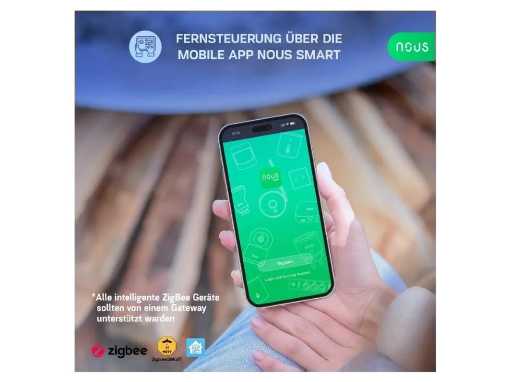 - Diaľkové ovládanie prostredníctvom mobilnej APP NOUS Smart a hlasové ovládanie, vyžaduje sa kompatibilný hub Zigbee