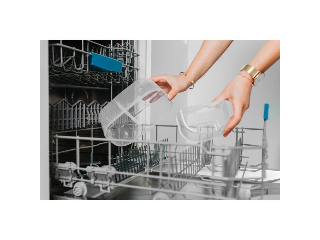 Obedový box sa skladá z dvoch odnímateľných nádob, ktoré sa ľahko čistia - dokonca aj v umývačke riadu. 1,1 litra hlavnej nádoby a 0,5 litra sekundárnej nádoby s vekom.