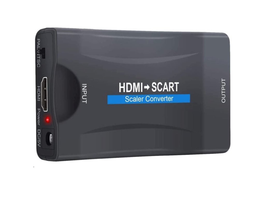 Pripojte napájací adaptér 230V (je súčasťou setu), aby prevodník HDMI na SCART fungoval správne.