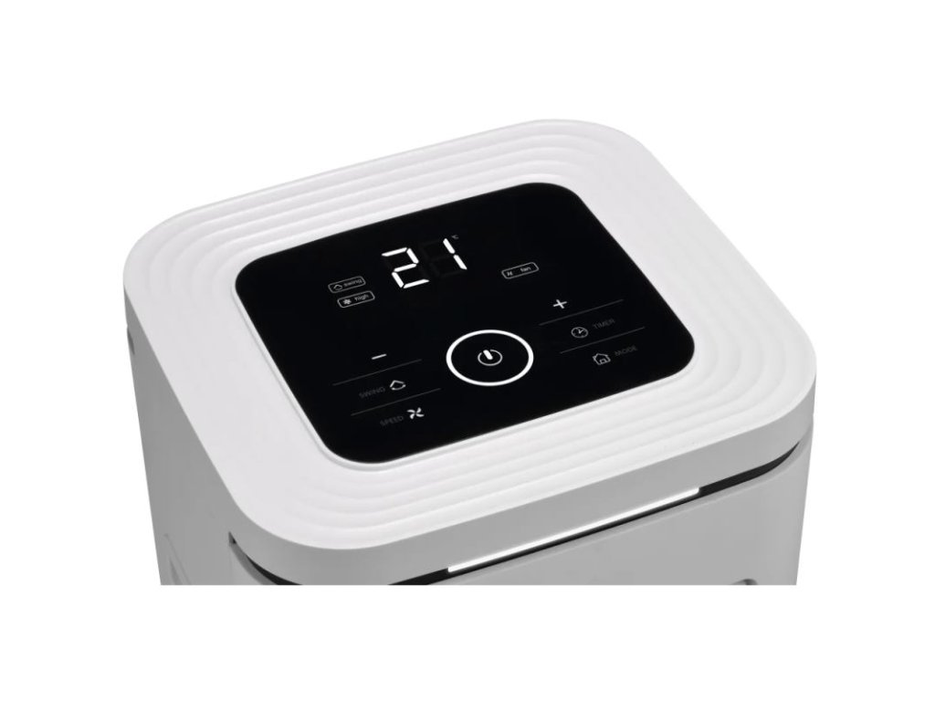 Klimatizácia je vybavená kolieskami pre ľahké presúvanie, 1,5 m dlhou výfukovou hadicou a nádržkou na vodu. Elegantnému dizajnu dominuje podsvietený dotykový panel.