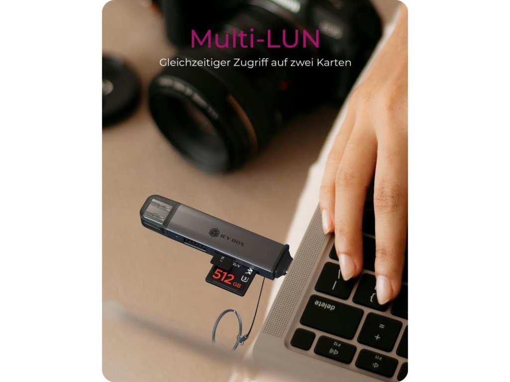 Zoznámte sa s IB-CR203-CU3 - všestrannou a kompaktnou čítačkou pamäťových kariet, ktorá je navrhnutá tak, aby vám zjednodušila prácu so súbormi, nech ste kdekoľvek. Vďaka kombinácii čítačky kariet, prídavného USB portu a duálneho rozhrania sa stane nepostrádateľným pomocníkom pre váš notebook, tablet aj smartfón.