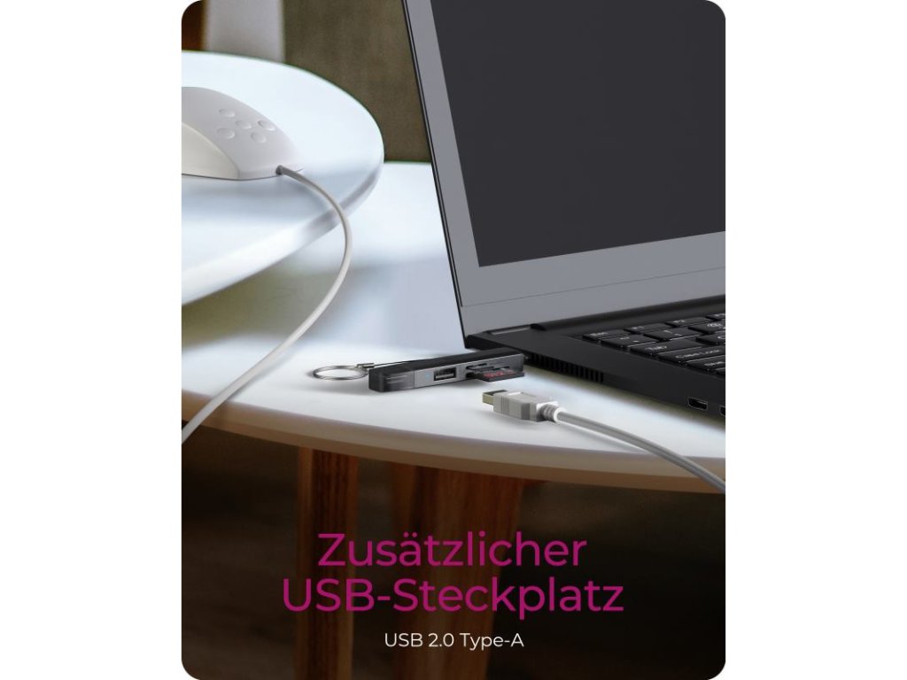 Prídavný USB port: Okrem slotov na karty disponuje aj zabudovaným portom USB Type-A s rýchlosťou prenosu až 480 Mbit/s. Tento port vám poskytne dodatočnú flexibilitu ? pripojte k nemu USB kľúč, klávesnicu, myš alebo iné príslušenstvo, zatiaľ čo pracujete s pamäťovými kartami. Ideálne riešenie, ak má vaše zariadenie obmedzený počet portov.
