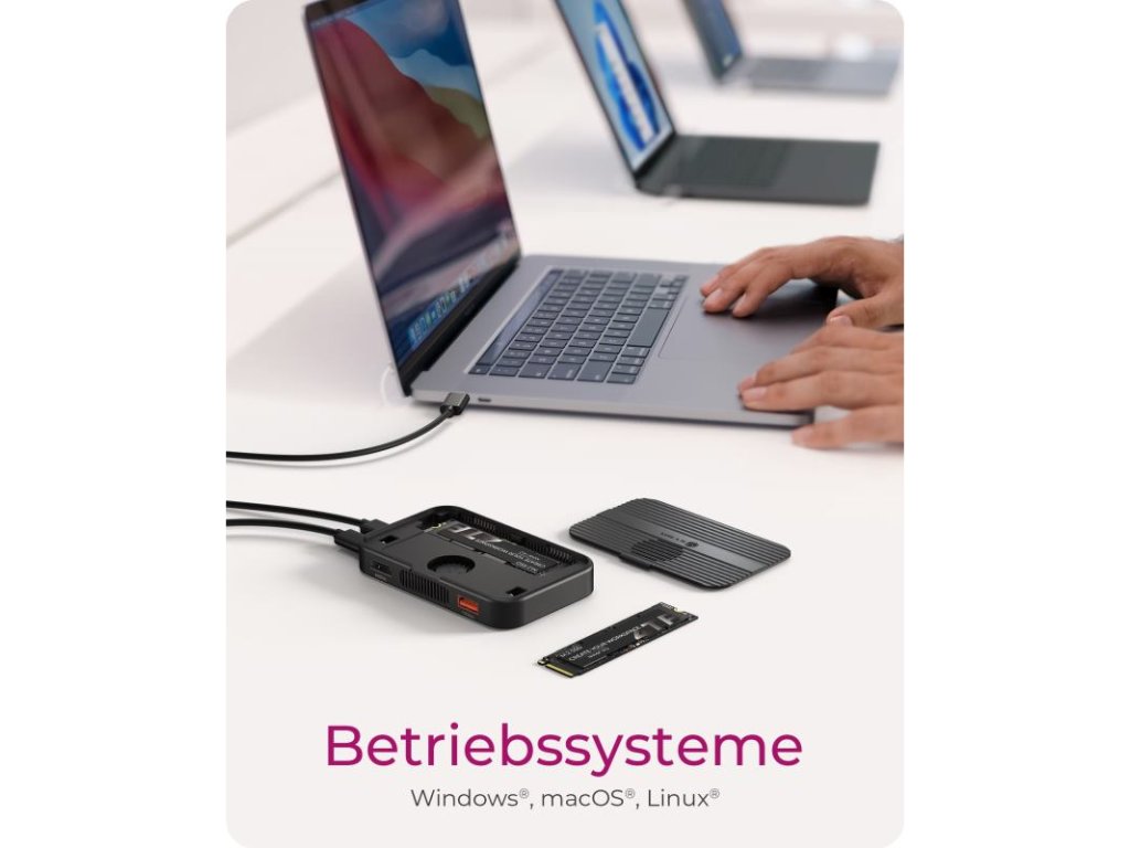 Táto dokovacia stanica funguje zároveň ako vysokorýchlostné puzdro pre M.2 NVMe a SATA SSD disky, ktoré vám poskytuje výkonné pripojenie aj rýchle externé úložisko v jednom zariadení! S magnetickým krytom pre inštaláciu SSD diskov bez použitia nástrojov a integrovaným ventilátorom pre optimálny výkon predstavuje dokonalé riešenie pre profesionálnych používateľov pracujúcich s veľkými súbormi, úpravou videa alebo zálohovaním údajov.