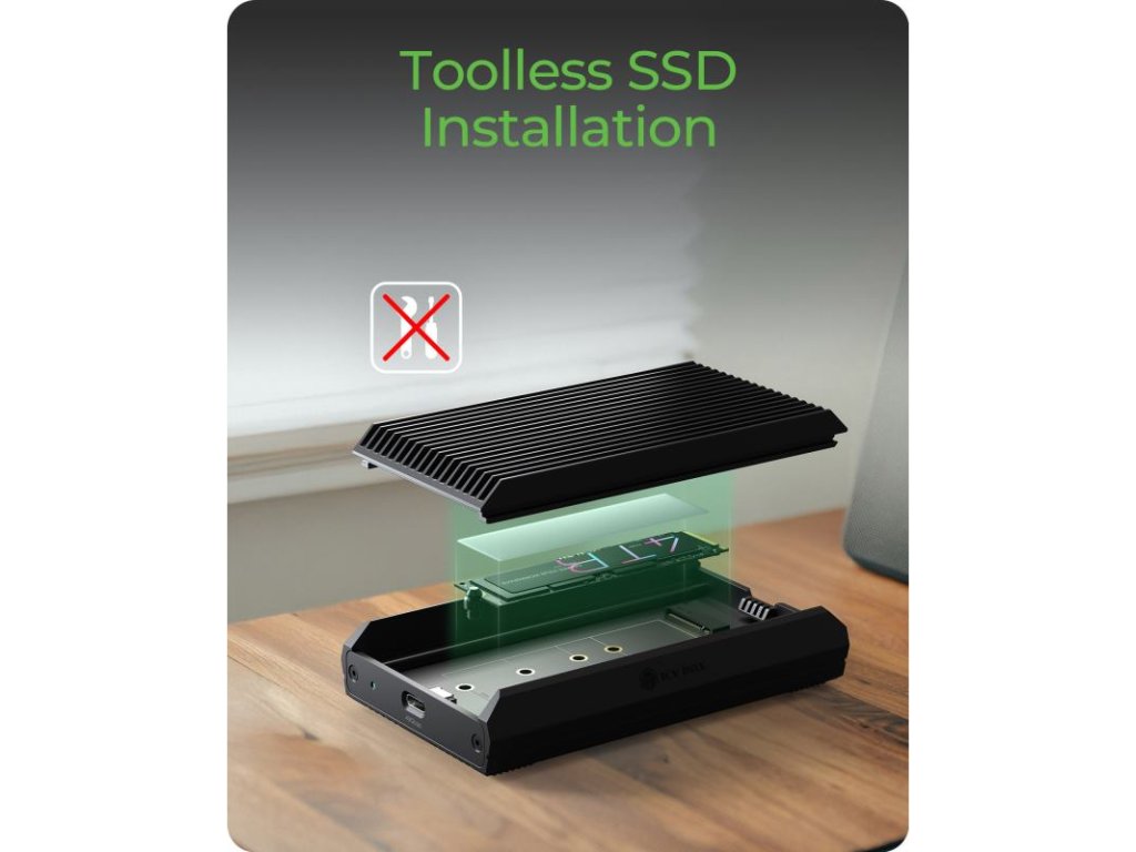 Prehrievanie môže spomaliť váš disk práve vtedy, keď ho najviac potrebujete. Tento box je vybavený vnútornou teplovodivou podložkou (thermal pad), ktorá priamo odvádza teplo z SSD disku na hliníkové puzdro. Váš disk tak zostane chladný a udrží si maximálnu rýchlosť aj počas dlhých a náročných pracovných cyklov.