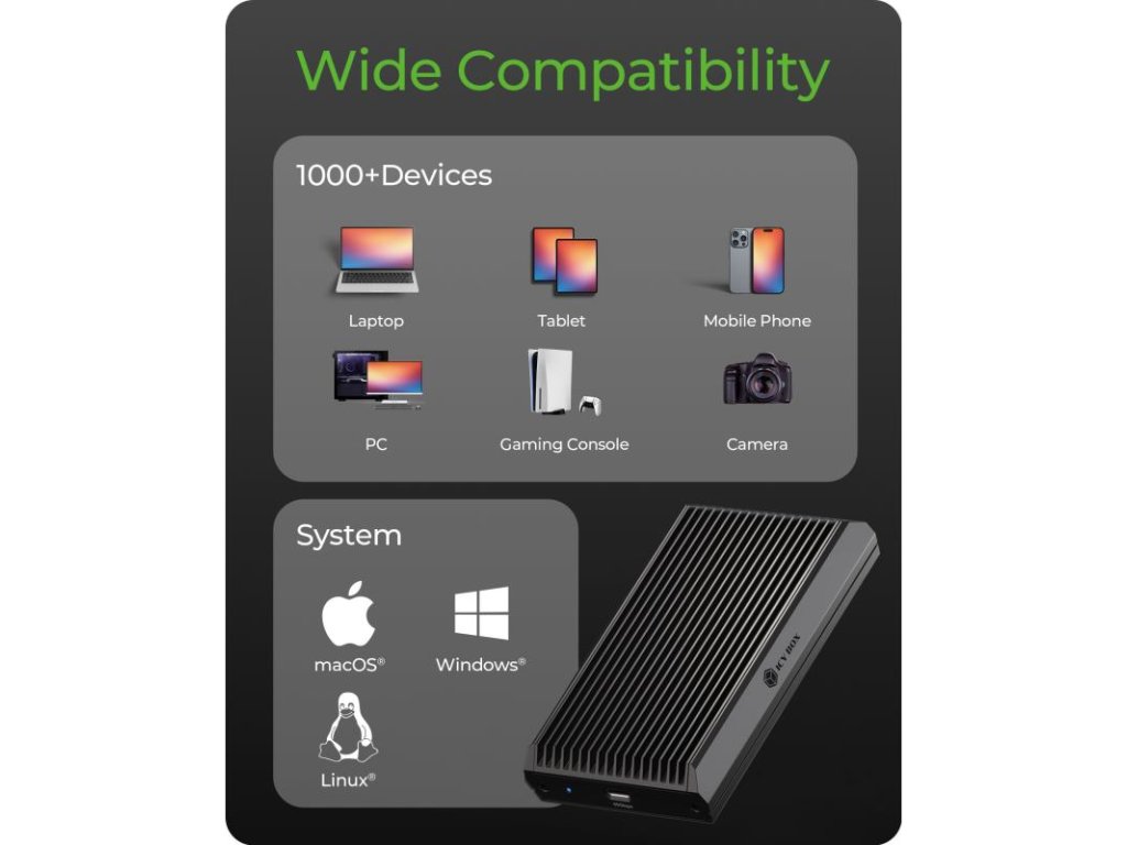 Zariadenie je plne kompatibilné s operačnými systémami macOS aj Windows. Môžete plynule prechádzať medzi rôznymi počítačmi bez nutnosti preformátovania alebo zložitého nastavovania.