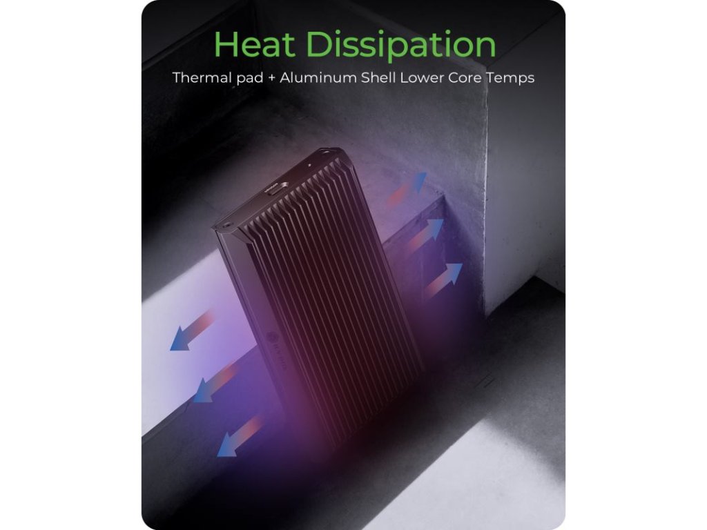 Odolné hliníkové puzdro chráni váš cenný SSD disk pred nárazmi a každodenným opotrebovaním. Okrem ochrany slúži hliníkové telo aj ako pasívny chladič, ktorý efektívne odvádza teplo pri intenzívnom používaní, čím pomáha udržiavať stabilný výkon aj na cestách.