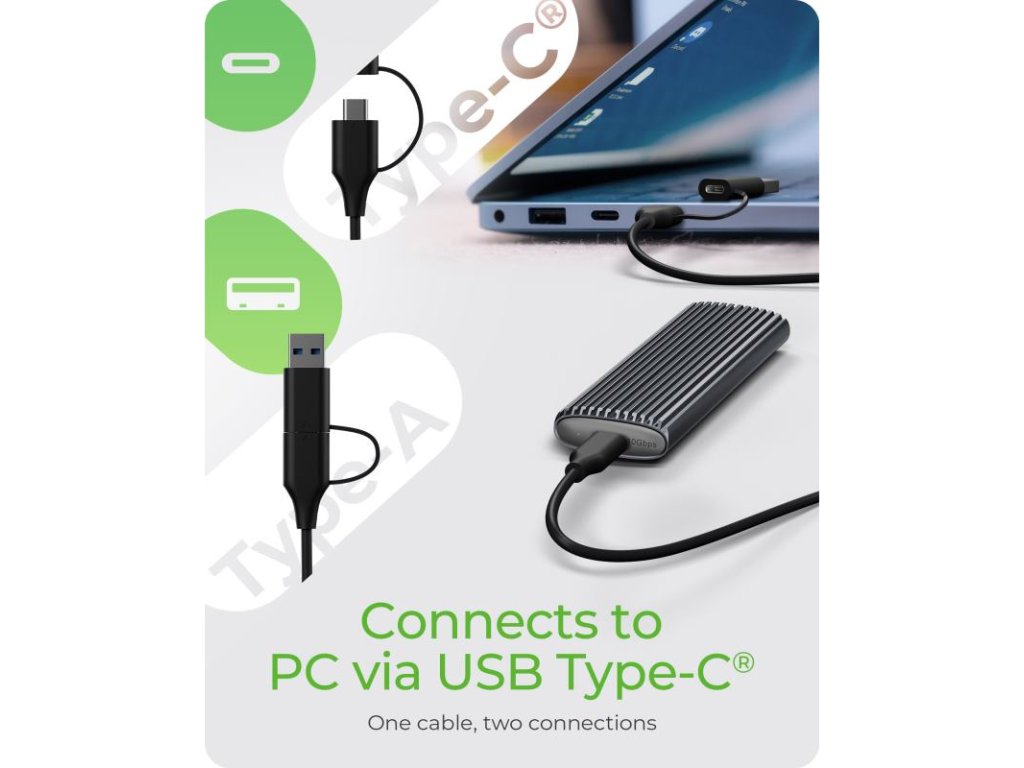 Vďaka podpore rozhrania USB 3.2 Gen 2 dosahuje box prenosové rýchlosti až 10 Gbit/s. Presun 20 GB súboru tak trvá len niekoľko sekúnd, čo je ideálne na zrýchlenie každodenných úloh a plynulejšiu prácu s veľkými súbormi.