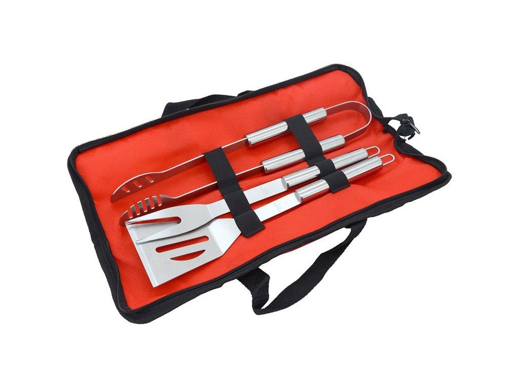 Sada náradia pre grilovanie, skladajúci sa z obracačky, vidličky a klieští.Kliešte sú špeciálne tvarované pre istý úchop najrôznejších pokrmov a majú dĺžku 35 cm. Dvojzubý vidlička s dĺžkou 32 cm. Obracačka dĺžky 33 cm s precízne zabrúsenou hranou, a odtokovými otvormi pre otáčanie mäsitých ale aj iných pokrmov.