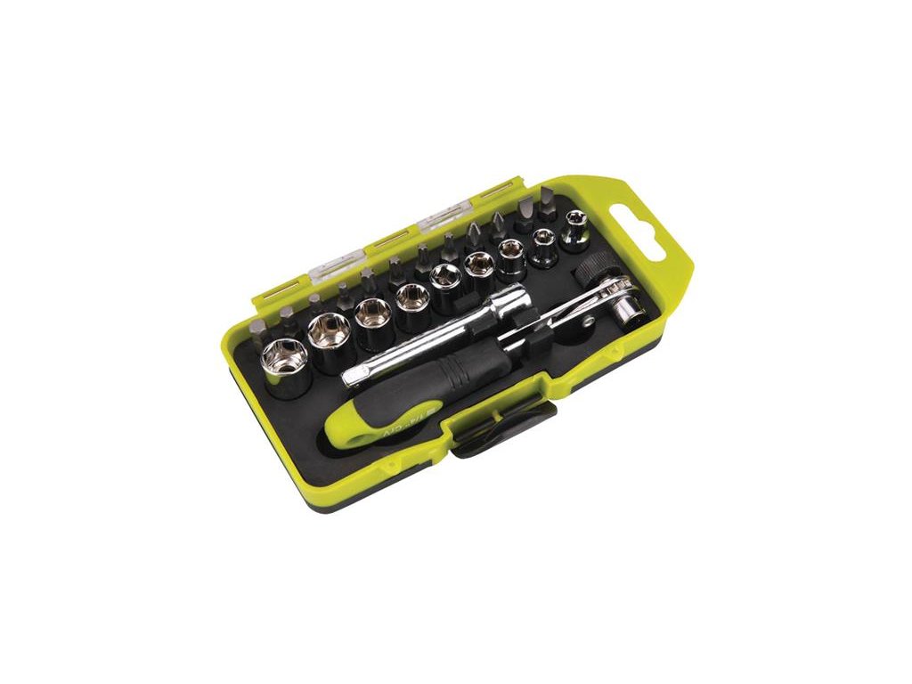 Vybavte si svoje náradie sadou týchto skvelých skrutkovačov. Unikátny račňový skrutkovač pre nadstavce a hroty (bity). Sada obsahuje 23 dielov. Univerzálne použitie vďaka širokej škále hlavíc a bitov. Krátka kombinovaná račňa možno kombinovať s nástrčnými hlavicami, a hroty plochými, krížovými HEX, a Torx. Túto sadu dopĺňa predlžujúce nástavec.Parametre produktu: