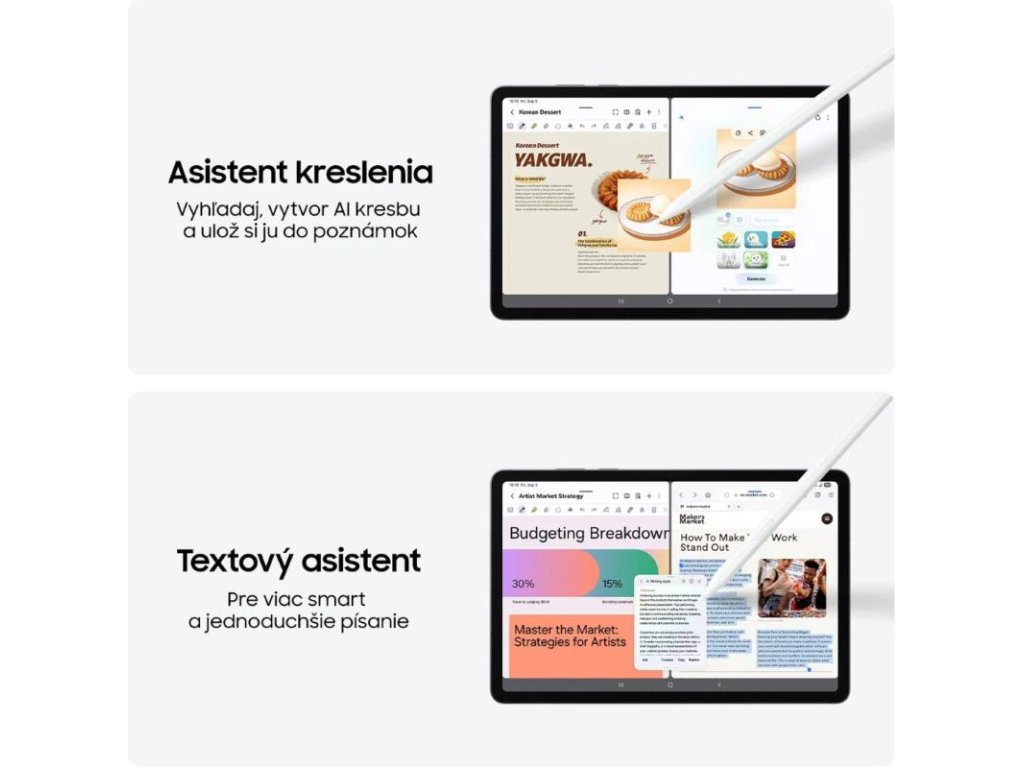 Tablet Galaxy Tab S11 5G prichádza s kolekciou predinštalovaných aplikácií - napríklad Goodnotes, LumaFusion, Clip Studio Paint a Notion. S nimi ľahko píšeš poznámky, upravuješ, kreslíš a máš všetko pod kontrolou. Navyše získaš prístup k aplikáciám optimalizovaným na dotykovú obrazovku, ako sú Noteshelf 3, ArcSite, Sketchbook a Picsart.
