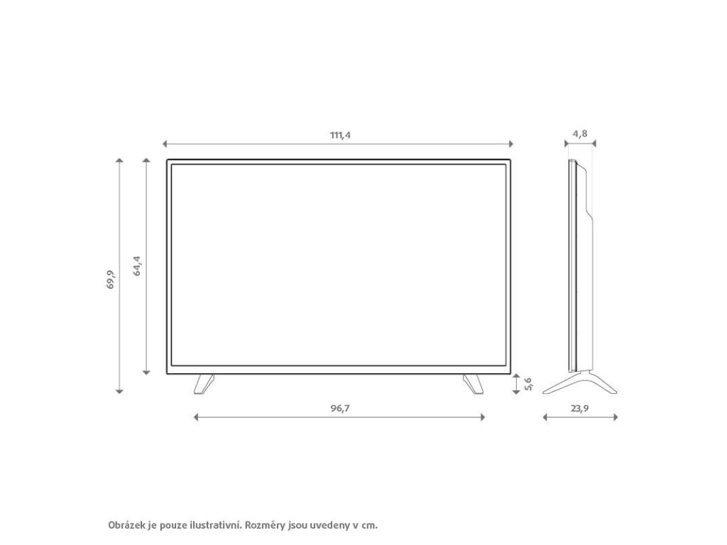 Rozmery televízora bez stojana (Š × V × H): 1 114,2 × 643,6 × 47,8 mm
