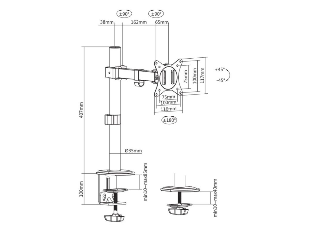 SBOX LCD-351/1-2, Desktop mount for 1 monitor