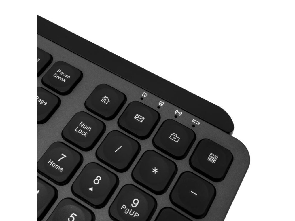 Táto elegantná bezdrôtová klávesnica v čierno-sivom dizajne je ideálnym riešením pre všetkých, ktorí hľadajú spoľahlivosť, pohodlie a moderný vzhľad za skvelú cenu. Vďaka pokročilej 2.4 GHz technológii s USB-A prijímačom získate stabilné pripojenie bez zdržaní a rušenia.