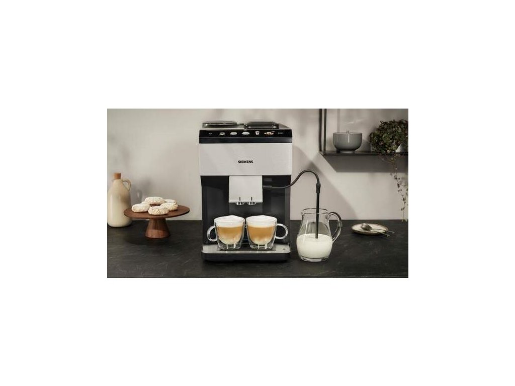 Kávovar Siemens TP516RX3 EQ500 classic connect umožňuje prípravu 19 nápojov v rámci kávovaru a aplikácie Home Connect. Všetky druhy kávy si rýchlo a pohodlne pripravíte stlačením jedného tlačidla: Ristretto, Espresso, Espresso Macchiato, Káva, Cappuccino, Latte Macchiato. Navyše je samostatne k dispozícii mliečna pena a horúca voda. Dopriať si môžete aj extra silnú kávu pri zachovaní správnej arómy vďaka aromaDouble Shot. Balenie obsahuje aj vodný filter, ktorý vylepšuje chuť kávy a predlžuje životnosť spotrebiča. Aby boli vaše nápoje pripravené vždy podľa vašich požiadaviek, môžete si nastaviť individuálnu