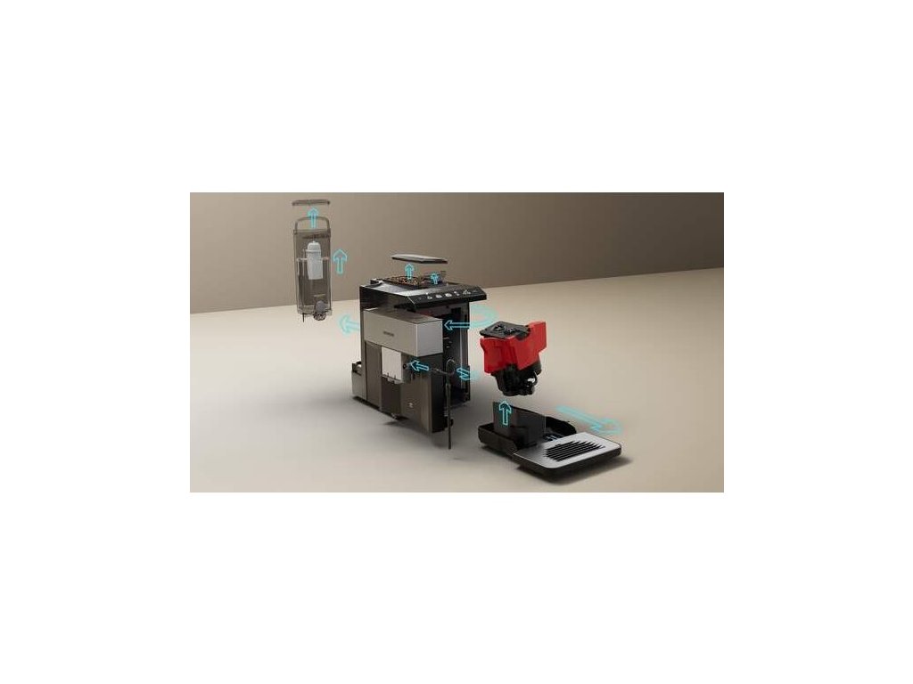 Čistenie kávovaru vám vrásky na čele nepridá. Jednoduchá údržba a rýchle čistenie sú zabezpečené pomocou jednoducho prístupných dvierok na prednej strane. Vyberateľná sparovacia jednotka umožňuje hygienické čistenie pod tečúcou vodou.