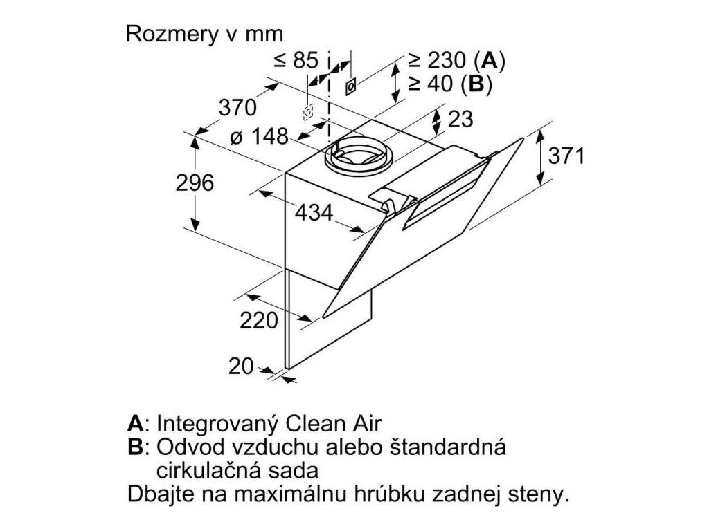 rozmery pri recirkulácii (VxŠxH): 850-1126 x 800 x 434 mm