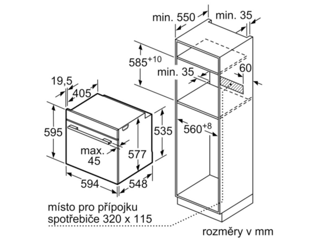 rozmery niky (VxŠxH): 585 mm - 595 mm x 560 mm - 568 mm x 550 mm