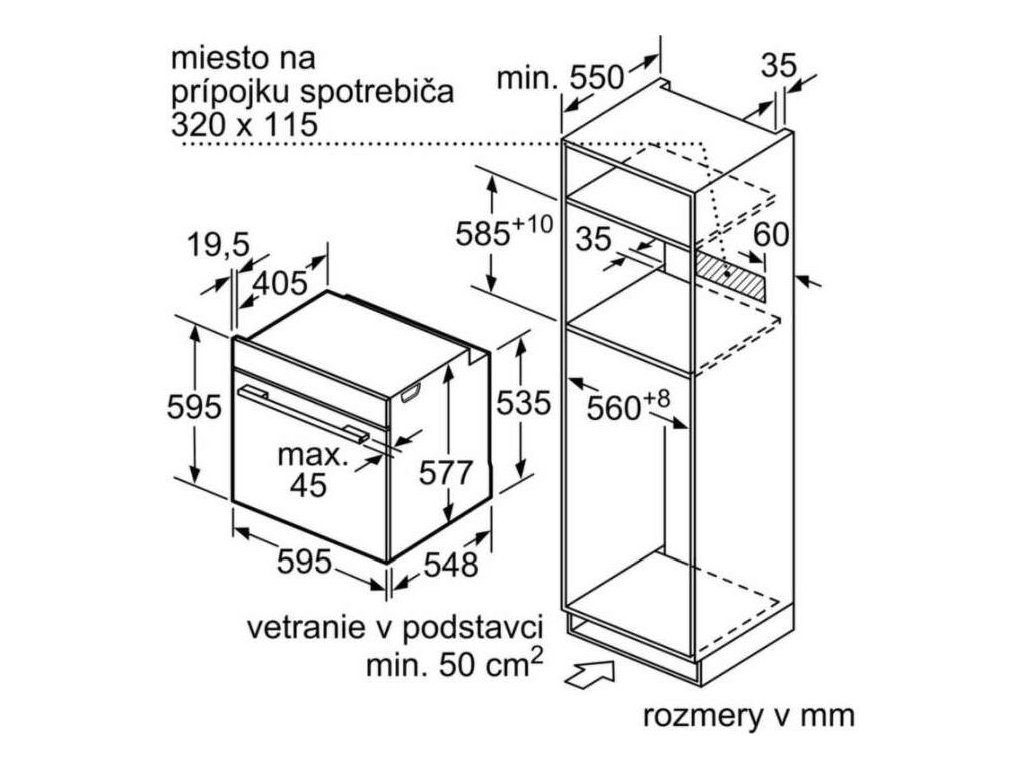 rozmery niky (V x Š x H): 585 mm - 595 mm x 560 mm - 568 mm x 550 mm