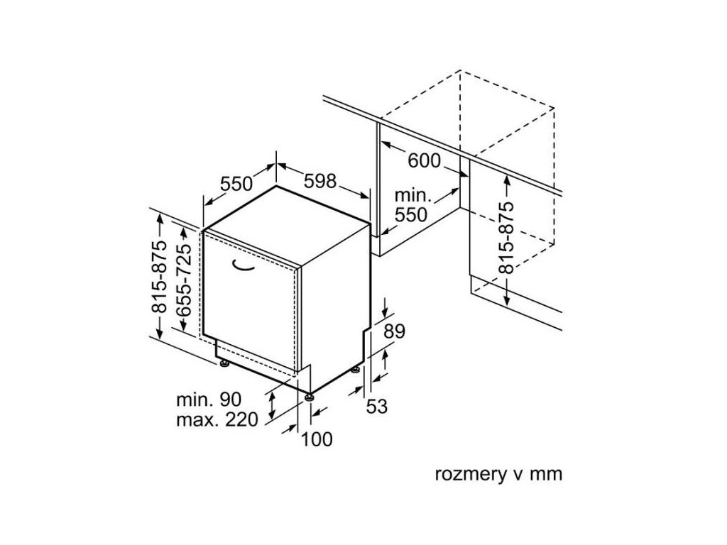 Požadovaná veľkosť otvoru na inštaláciu (v x š x h): 815-875 x 600 x 550 mm