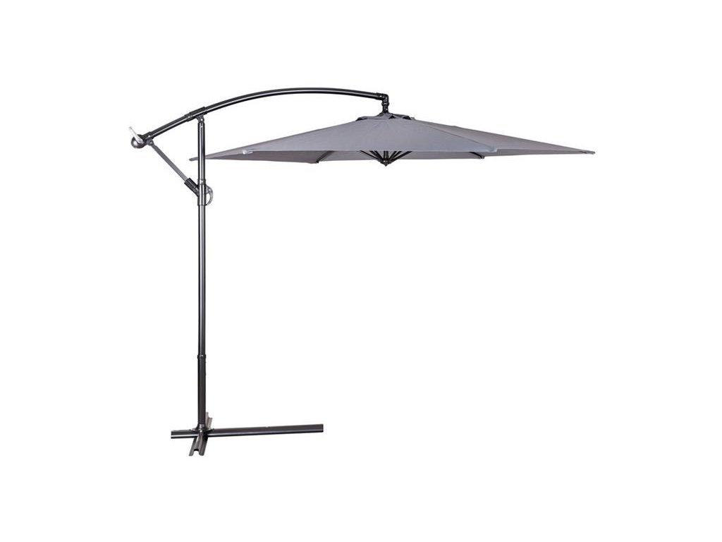 Závesný slnečník priemer 300 cm má 6 oceľových rebier 12 x 18 mm, je vyrobený z polyesteru 160 g/m2. Pevná oceľová tyč má priemer 4,8 cm. Stojan, ktorý je súčasťou výrobku, je možné zaťažiť betónovými dlaždicami pre zvýšenie celkovej stability. Otváranie slnečníka sa vykonáva kľučkou. Navíjací systém má plastové puzdro s kovovým navíjacím mechanizmom - kovová kľučka, kovový hriadeľ a kovový pastorok s kovovou závlačkou. Farba šedá.Technické parametre: