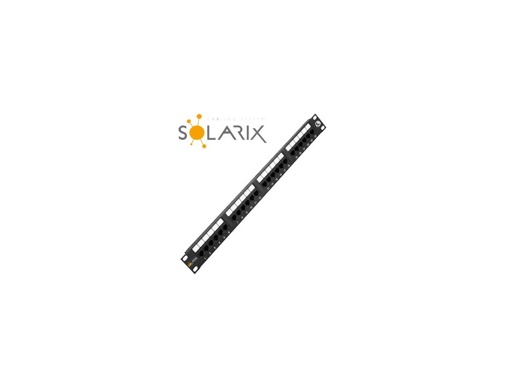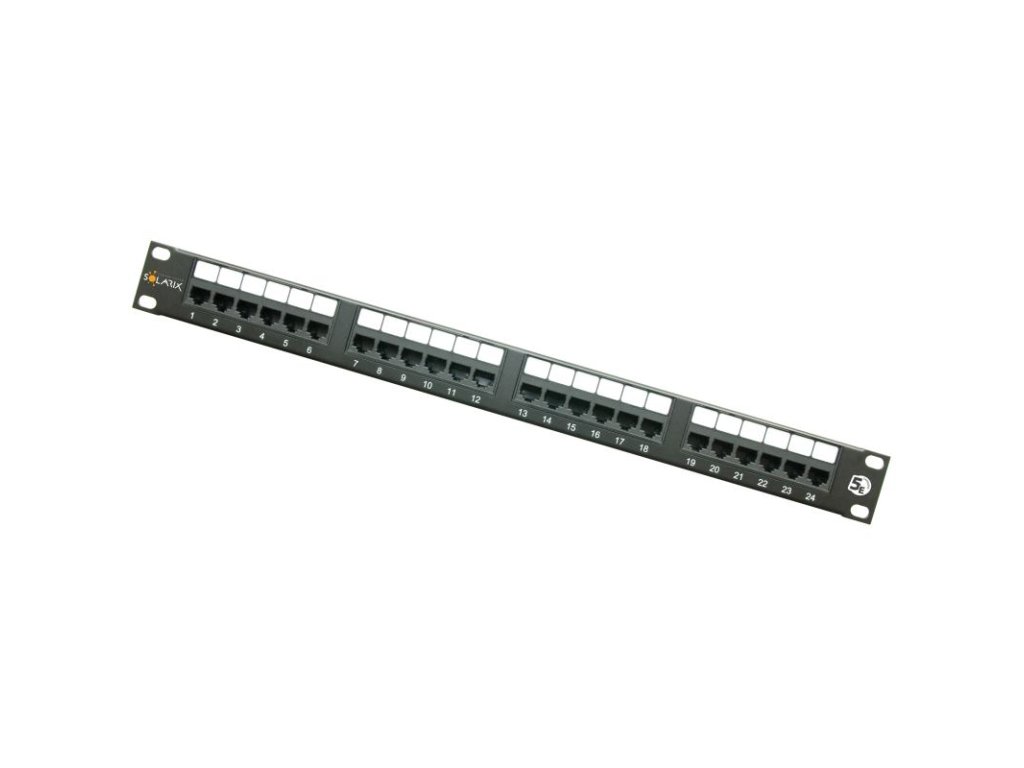 Netienené patch panely produktovej rady Solarix - kategórie 5E sú dodávané v prevedení 12, 24 a 48 portov RJ45 a sú osadené moduly s duálnou IDC svorkovnicou typu 110 / Krone. Každý kontakt je na tejto svorkovnici z dôvodu ľahkého zakončenia kábla označený farbami podľa typu zapojenia, a to buď podľa štandardu T568A, alebo T568B. Tieto komponenty štruktúrovanej kabeláže Solarix sú vyrobené tak, aby zaručovali dlhú životnosť, vynikajúcu funkčnosť a predovšetkým spoľahlivosť. Netienené patch panely Solarix - kategórie 5E sú testované až do šírky pásma 150 MHz a prevyšujú tak požiadavky na komponenty kategórie 5E definované v medzinárodných normách ANSI / TIA / EIA 568, ISO / IEC 11801 a EN 50173. Štandardná farba patch panelov je čierna. Veľkosť v dátovom rozvádzači je 1U