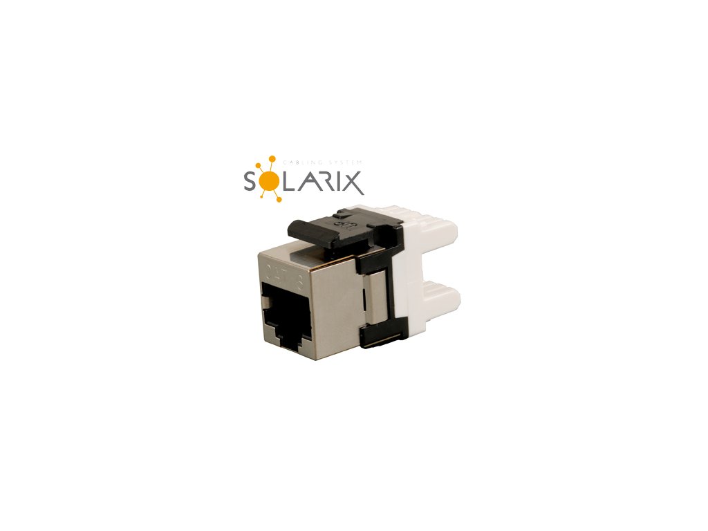 Zarezávacie keystony produktovej rady Solarix - kategórie 6 sú dodávané ako v netienenom, tak aj v tienenom prevedení. Štandardná farba u netieneného keystonu je čierna; v prípade tieneného keystonu je telo modulu oplechované striebornou kovovou časťou. Oba tieto typy Keystone prevyšujú požiadavky definované v štandardoch ANSI / TIA / EIA 568, EN 50173 a ISO 11801 pre kategóriu 6. Zarezávacie keystony Solarix ponúka vysokú spoľahlivosť, maximálnu funkčnosť a jednoduchú inštaláciu. Kontakty duálny svorkovnice typu 110 / Krone sú označené farebnou schémou podľa spôsobu zapojenia, a to buď podľa štandardu T568A, alebo T568B. Do svorkovnice je možné zarezať káble s vodičmi o veľkosti AWG 26 - 22. Pre pohodlné a bezpečné zarezávanie Keystone je k dispozícii montážny držiak SXKJ-MD-BU určený na zafixovanie keystonu na pracovnej ploche (tj. Pri zarezávaní nie je nutné držať keystone priamo v ruke) . Vďaka svojim kompaktným rozmerom sú tieto zarezávacie keystony kompatibilné s modulárnymi zásuvkami väčšiny výrobcov (napr. ABB, Schneider, Legrand, Moeller, Hager, Obzor atď.)