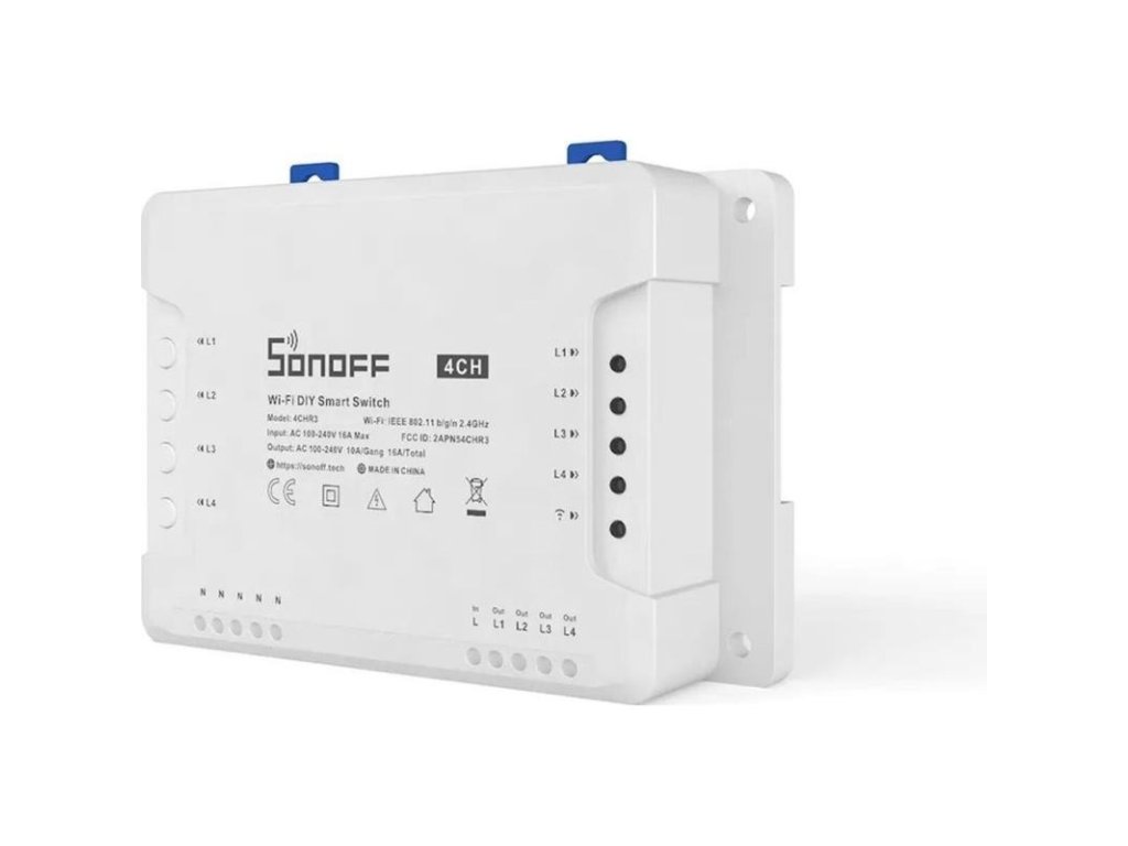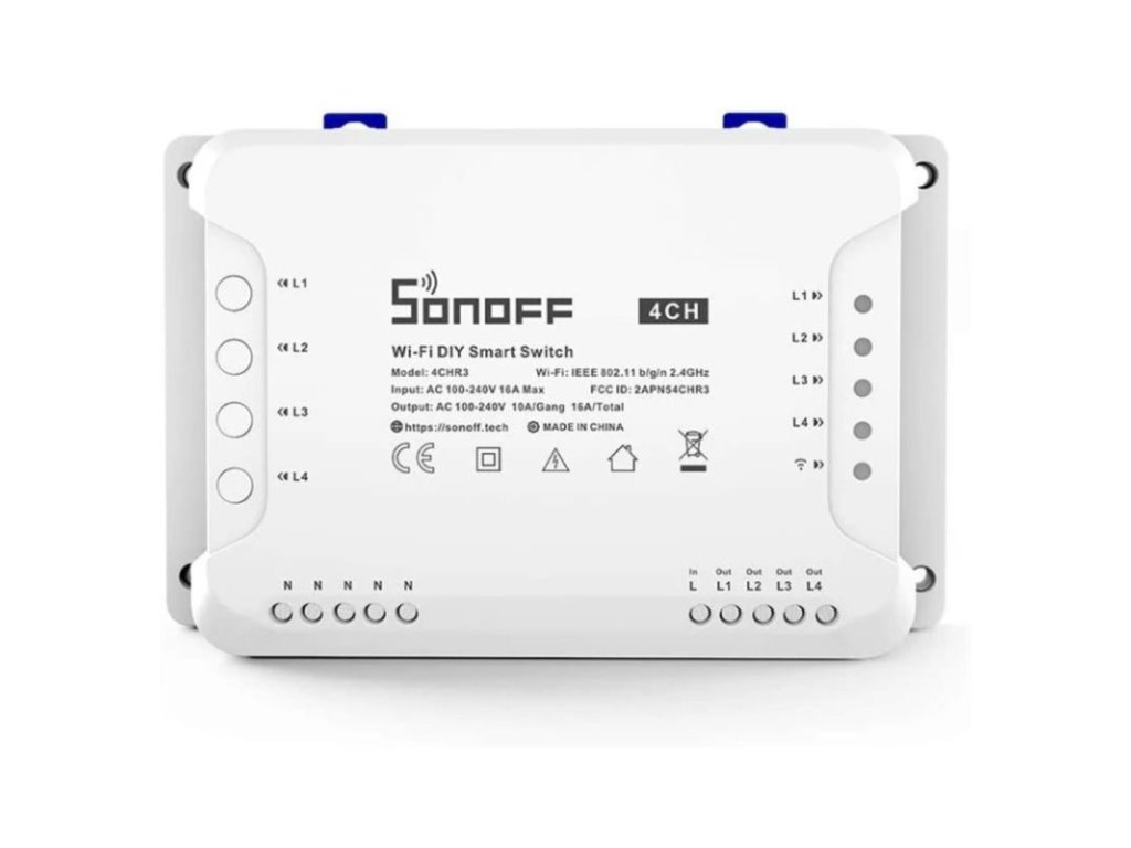 Sonoff 4CH R3 je zdokonalená verzia predchodcu 4CH R2. Ide o 4-kanálový WiFi spínač navrhnutý na pripojenie až štyroch zariadení. Umožňuje tak perfektnú kontrolu nad ich prevádzkou prostredníctvom zabezpečeného cloudového prostredia Amazon Web Services (AWS) v kombinácii s mobilnou aplikáciou odkiaľkoľvek na svete.