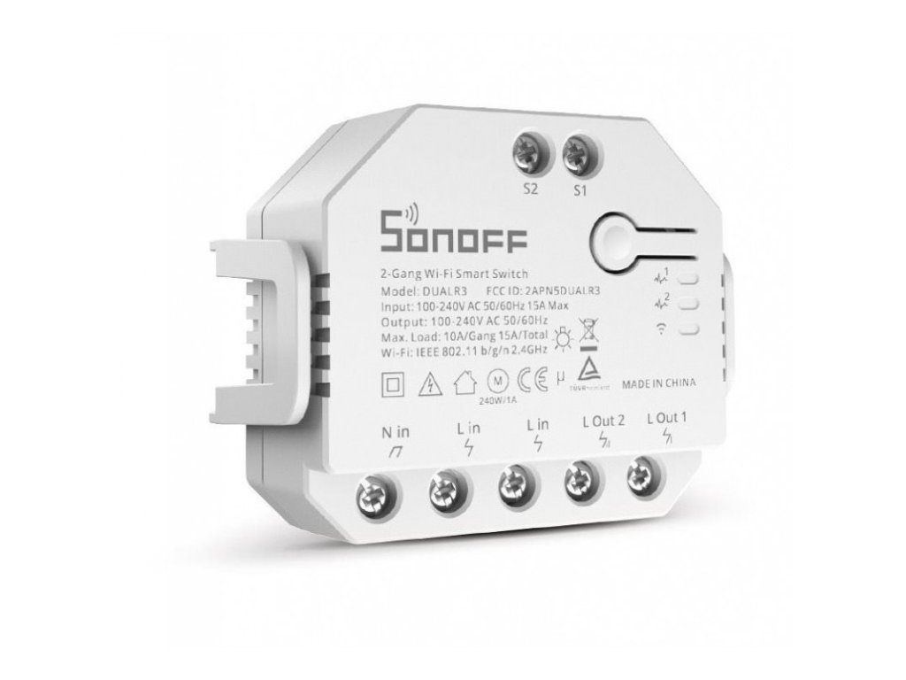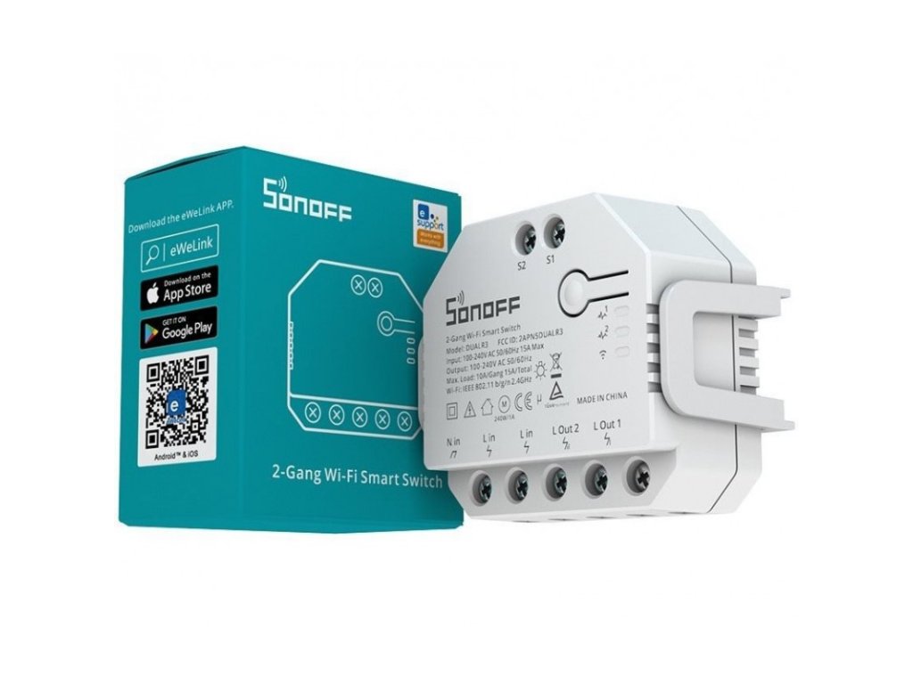 Vďaka inteligentnému spínaču Sonoff DUALR3 môžete pomocou mobilnej aplikácie úplne jednoducho vzdialene ovládať osvetlenie, elektroinštaláciu, ovládanie okien, dverí, brán alebo vonkajších tieniacich roliet. Spínač stačí zapojiť a následne a spárovať s domácou WiFi sieťou pomocou mobilnej aplikácie eWeLink (pre Android a iOS).