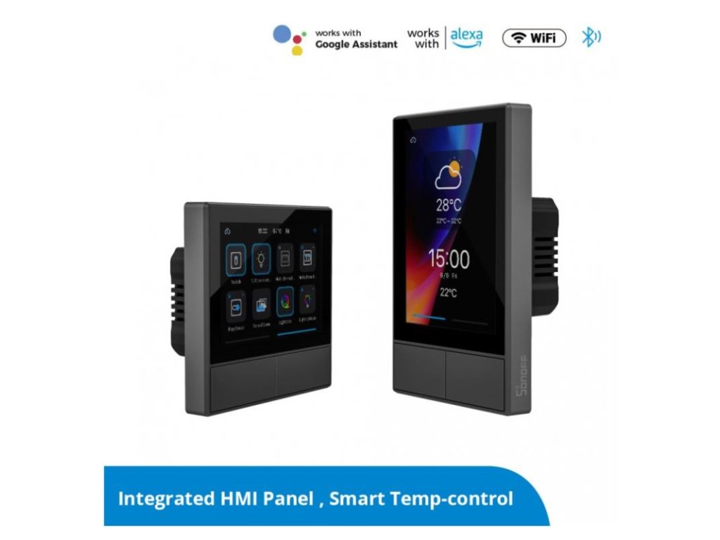 Centrálna jednotka Sonoff NPanel EU zvláda komunikáciu všetkých kompatibilných zariadení. Dokáže spárovať všetky senzory alebo spínače. Patria sem snímače pohybu, teploty, vlhkosti, dymu a otvorených dverí. Všetky nastavenia sú pohodlne monitorované na 3,5" dotykovej obrazovke.