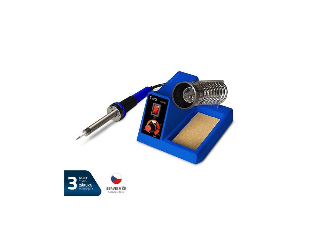 Na tento výrobok poskytujeme 3 roky záruku.Analógová spájkovacia stanica (mikropájkovacia stanica) GETI GSS501 na spájkovanie pri teplotách od 150 do 480 °C. Ideálna spájkovacia stanica so základnými funkciami pre domáce hobby alebo študentov. Stanica je vhodná na opravy elektrických a elektronických zariadení (osadzovanie dosiek plošných spojov) a na iné spájkovacie aplikácie. Vypínač so svetelnou indikáciou. Elektronické analógové ovládanie a potenciometer na udržiavanie teploty.