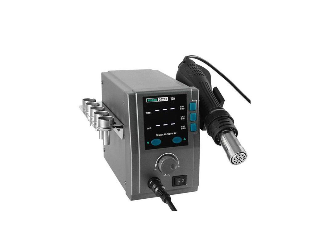 Stanica SUGON 2020D ponúka širokú škálu nastaviteľných prevádzkových parametrov, ktoré umožňujú prispôsobiť teplotu a výkon fúkania konkrétnej úlohe. Silný, ale rovnomerný prúd vzduchu uľahčuje presné spájkovanie a demontáž elektronických súčiastok a vďaka plynulej regulácii je jednotka ideálna ako pre chúlostivé aplikácie, tak pre prácu s väčšími súčiastkami.