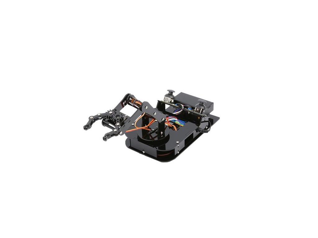 - 4-osové flexibilné robotické rameno (4DOF) – ponúka rotáciu svorky až 260° a kĺbov do 180°. Ideálne na praktickú výučbu a robotické experimenty.