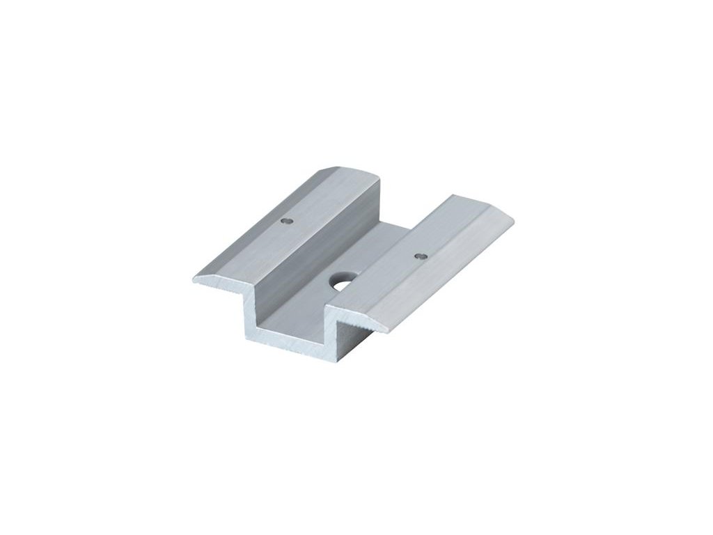 Stredná strieborná montážna svorka 50 mm na upevnenie mono a polykryštalických fotovoltaických panelov na šikmé a ploché strechy i voľne stojace systémy.NUTNÉ KÚPIŤ SKRUTKU 14562144, PODLOŽKU 14562142 A KAMEŇ 14562140