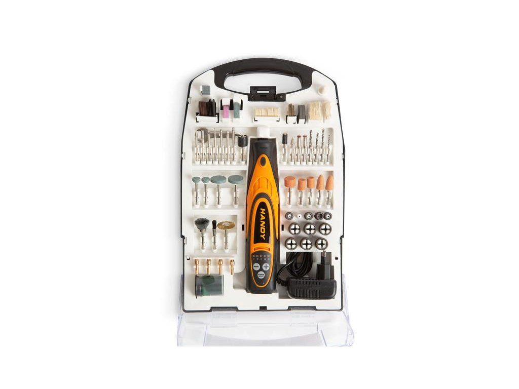 Brúsny, gravírovací a vŕtací stroj HANDY DRILL bol špeciálne vyvinutý pre domáce použitie, manikúru / pedikúru a domácich majstrov.Vďaka zabudovanému akumulátoru môžete pracovať bez káblov kdekoľvek. Umožňuje vám vŕtanie, leštenie, gravírovanie alebo dokonca vyrezávať menších otvorov.Môže to byť ideálne riešenie na odstránenie okrajov otrepov. Maximálna kapacita otvoru Ø3,2 mm.Rôzne doplnky sa dajú ľahko a rýchlo pripojiť. Vďaka svojim kompaktným rozmerom a hmotnosti je s náradím ľahká manipulácia aj na ťažko dostupných miestach. Môže byť vhodný aj na presné obrábanie dreva, kovu a plastov.- Prevádzka s akumulátorom