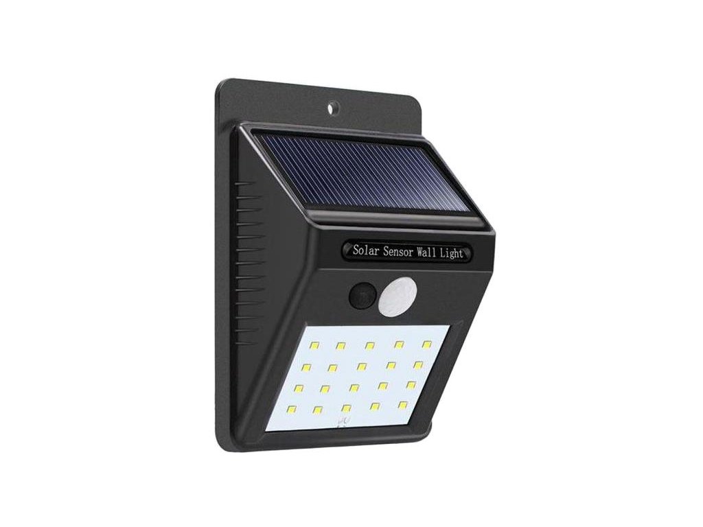 Solárne svietidlo LED s PIR čidlom nástenné / Solárne svetlo /Praktické LED nástenné svietidlo s PIR čidlom, solárnym nabíjacím panelom a Li-Ion článkom 18650 3,7V / 1200mAh. Článok je umiestnený v držiaku a dá sa ľahko vymeniť. Ideálne pre umiestnenie do vonkajších priestorov, ktoré majú byť osvetlené pre bezpečný priechod.