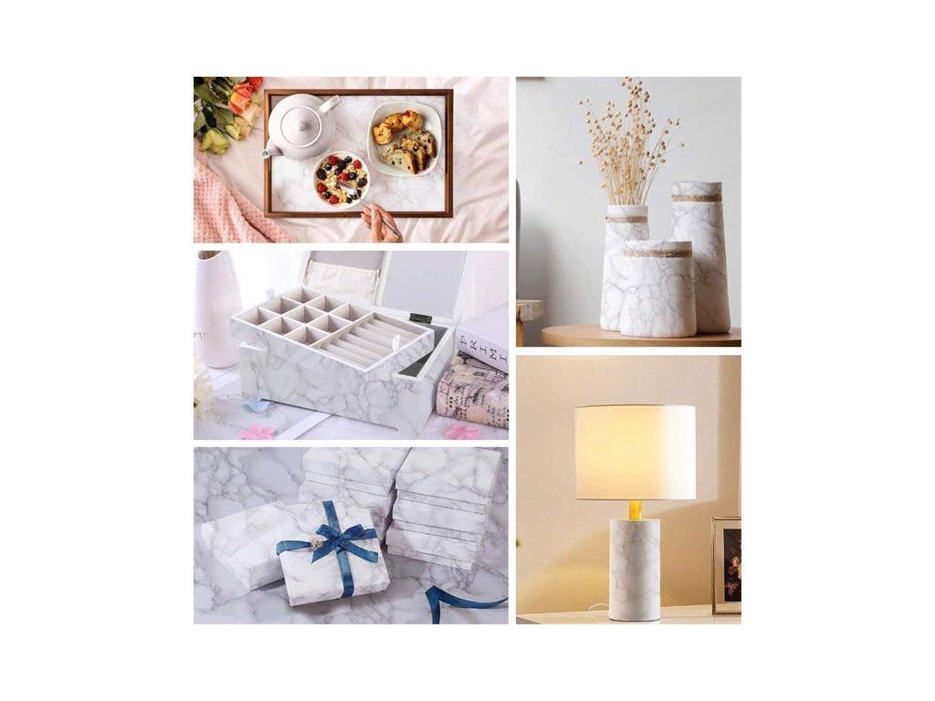 K zmene interiéru nepotrebujete míňať hromady peňazí, ani plánovať rozsiahlej rekonštrukcie. Bohato vám postačí tieto samolepiace tapety, vďaka ktorým dostane váš starý nábytok nový život. Vďaka elegantnému vzhľadu mramoru vykúzlite príjemnú atmosféru.Aplikácia tapiet je vďaka samolepiacej spodnej časti veľmi jednoduchá. K ruky sa Vám bude ale hodiť nožík, ktorým odrežete prebytočné kúsky tapety.