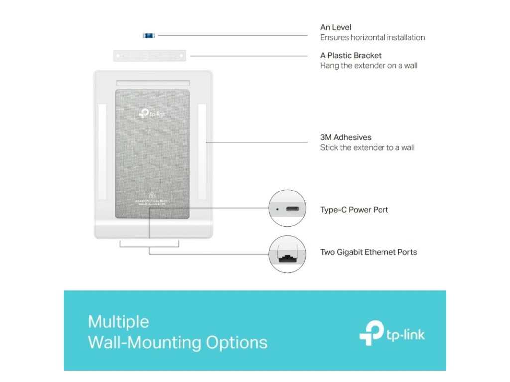 Archer Air R5 bol navrhnutý pre jednoduchú montáž na stenu a umožňuje niekoľko spôsobov inštalácie. Vďaka dvom lepiacim pásikom 3M na zadnej strane a príslušenstvu v podobe plastového držiaka ho môžete prilepiť alebo pripevniť na stenu. Flexibilné možnosti umiestnenia súčasne nezaberajú miesto v elektrickej zásuvke.