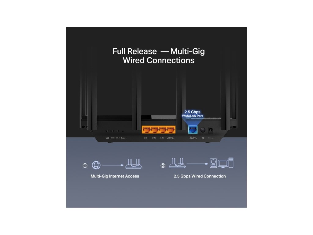 Ethernetové porty: 1× 2.5 Gigabit WAN/LAN Port, 1× Gigabit WAN/LAN Port, 3× Gigabit LAN Ports