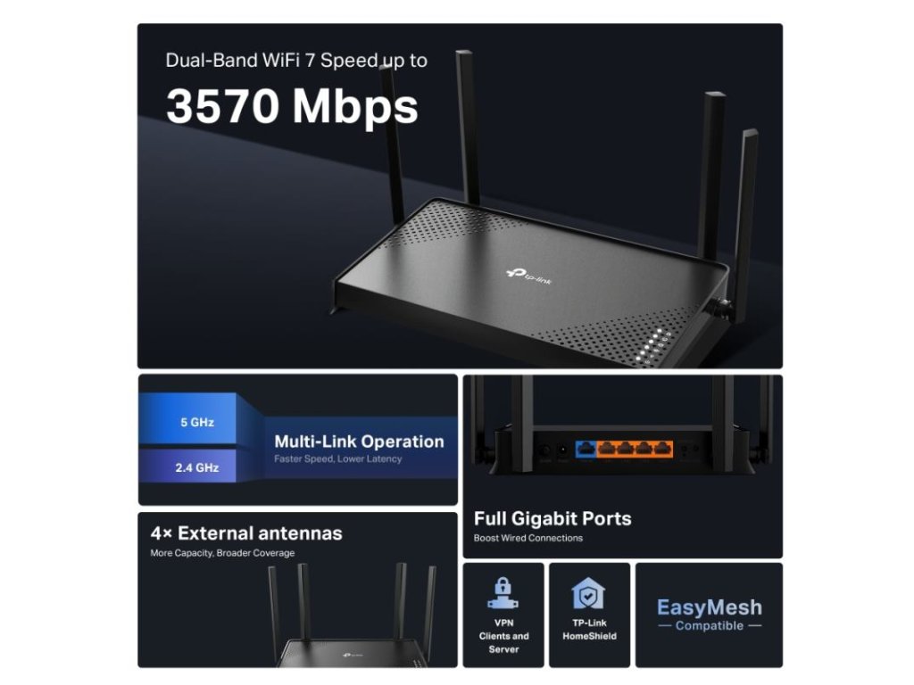 TP-Link Archer BE220 BE3600 Wi-Fi 7 Router