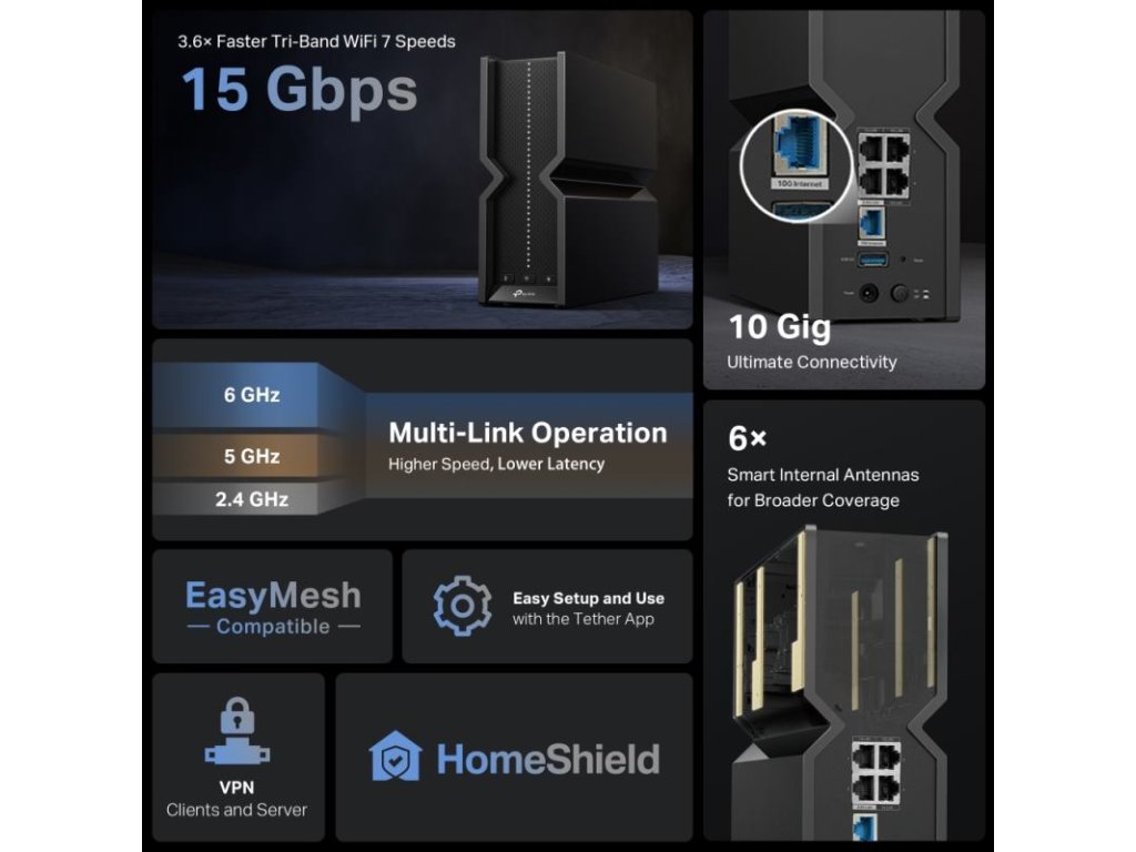 S routerom TP-Link Archer BE700 získate špičkové riešenie pre vašu domácu sieť, ktoré je pripravené na budúcnosť a poskytne vám všetko, čo potrebujete pre dokonalé pripojenie celej rodiny.