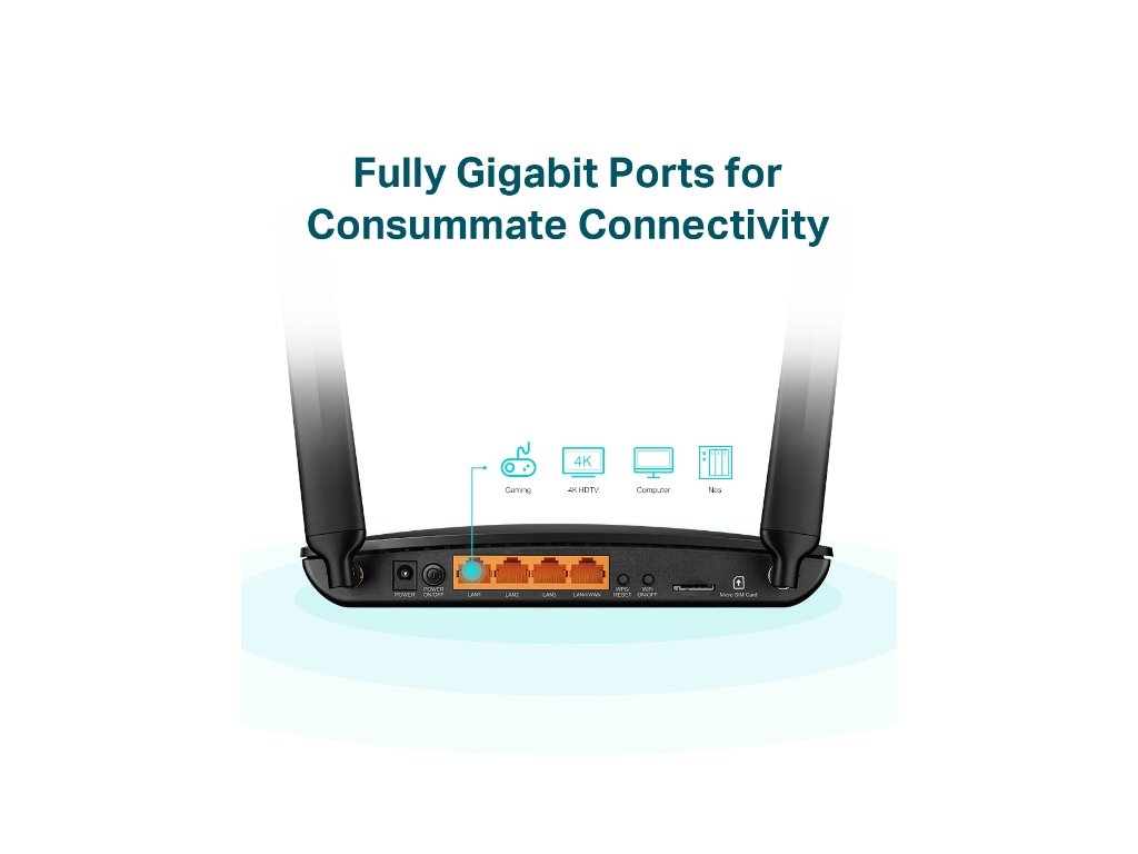 Rozhranie: 1x 10/100/1000 Mbps LAN / WAN port, 3x 10/100/1000 Mbps LAN porty, 1x slot na micro SIM kartu