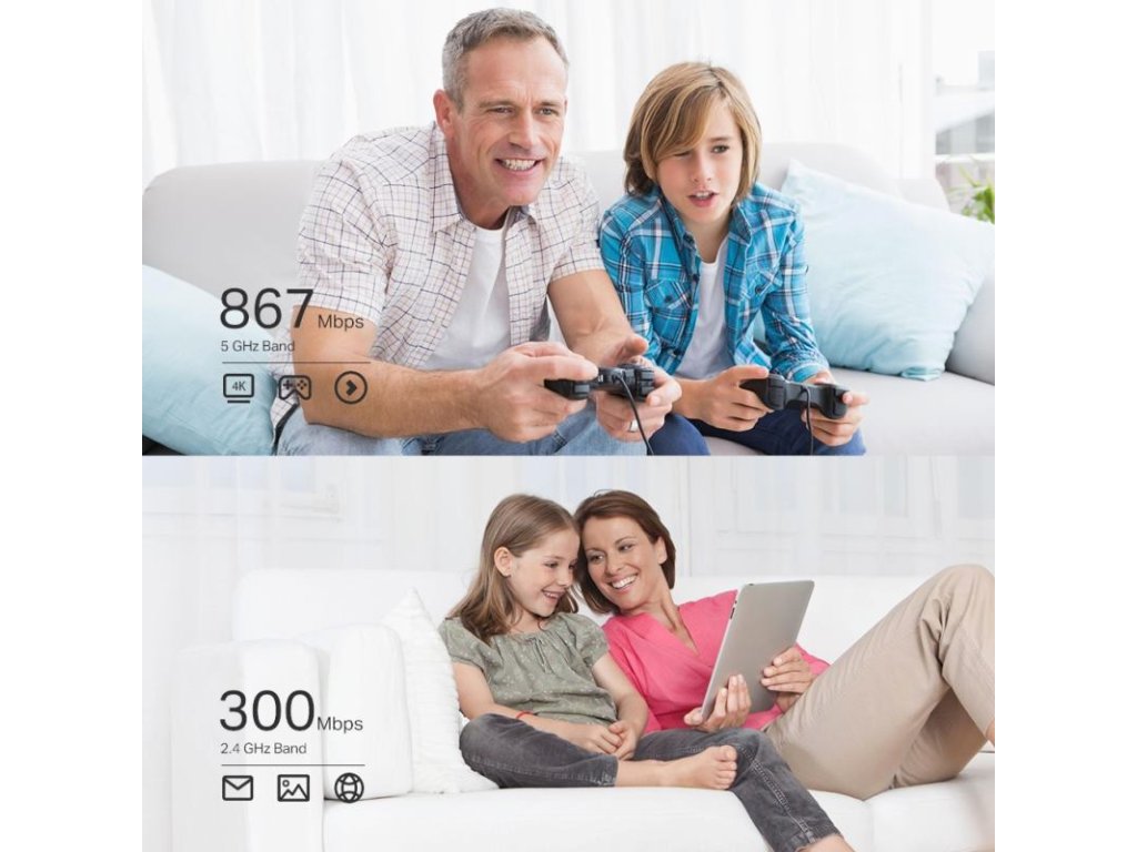 Wi-Fi prenos: až do rýchlosti 1200 Mb/s (867 Mb/s v pásme 5 GHz a 300 Mb/s v pásme 2,4 GHz)