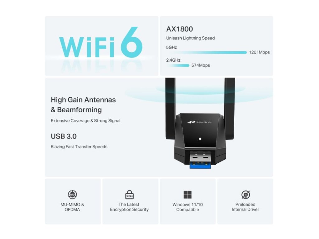 AX1800 Dual Antennas High Gain Wireless USB Adapter Archer TX30U Plus