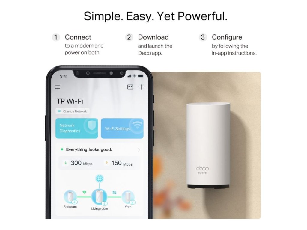 Deco BE25-Outdoor je ideálnym riešením pre domácnosti a kancelárie, ktoré potrebujú spoľahlivé a rýchle Wi-Fi pripojenie s pokrytím vo vonkajších priestoroch. S jeho pokročilými funkciami a vysokou úrovňou ochrany siete sa jedná o skvelú voľbu pre moderné internetové prostredie.