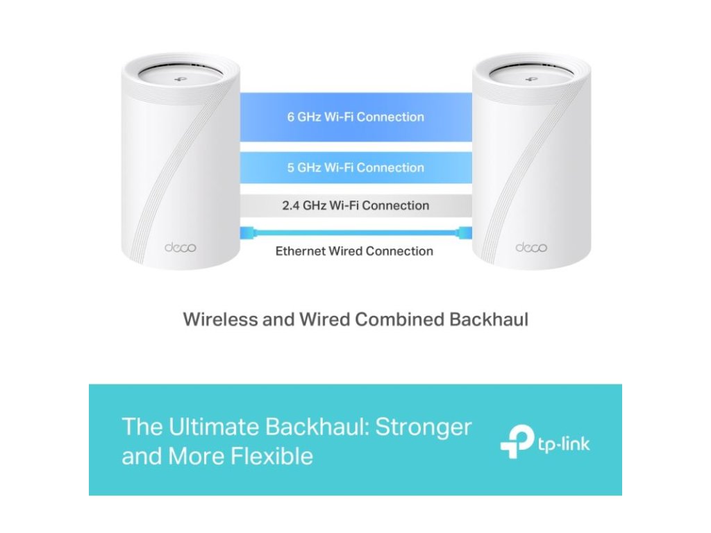 Technológia: TP-Link Mesh - Voliteľné ethernetové backhaul spolupracuje na prepojení jednotiek Deco a poskytuje bezproblémové pokrytie