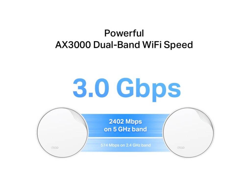 AX3000 dvojpásmová Wi-Fi: 2402 Mb/s (5 GHz) + 574 Mb/s (2,4 GHz)