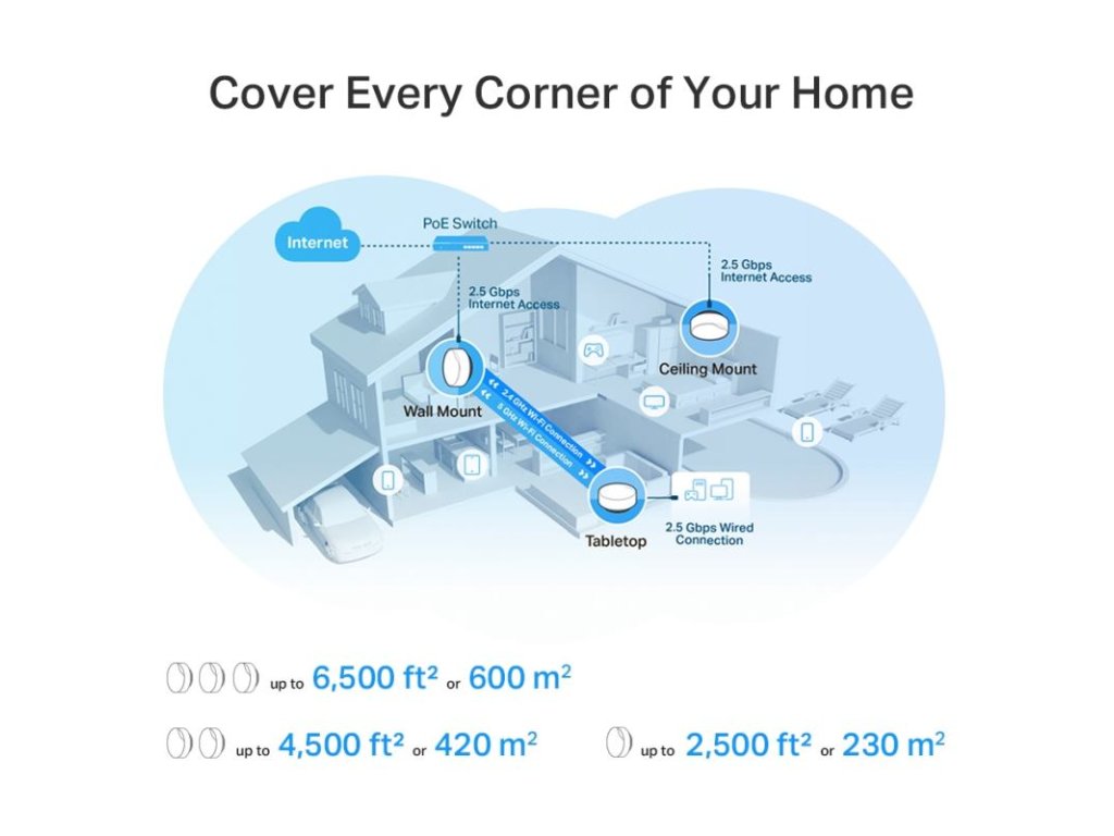 Dosah: Domy s 1-3 spálňami (1-pack), TP-Link Mesh technológia